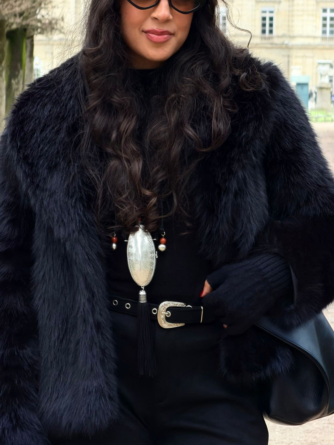 Description: - Plush faux-fur fabric - Short, waist-length silhouette - Smooth inner lining - Lapel...