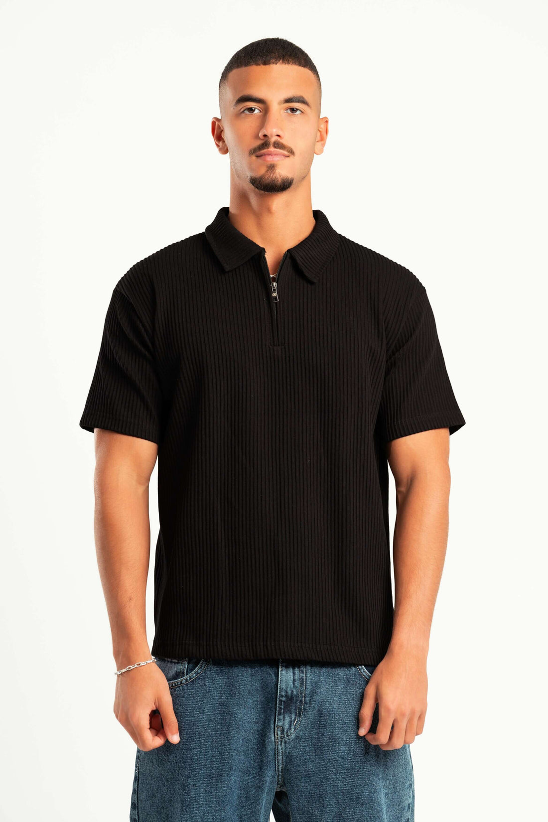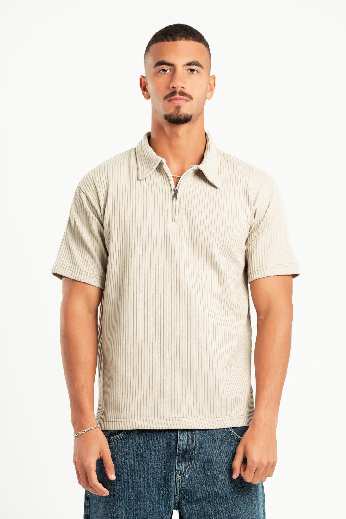 OFF-WHITE RIBBED QUARTER ZIPPER