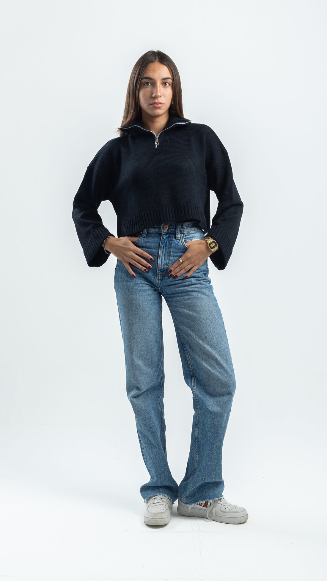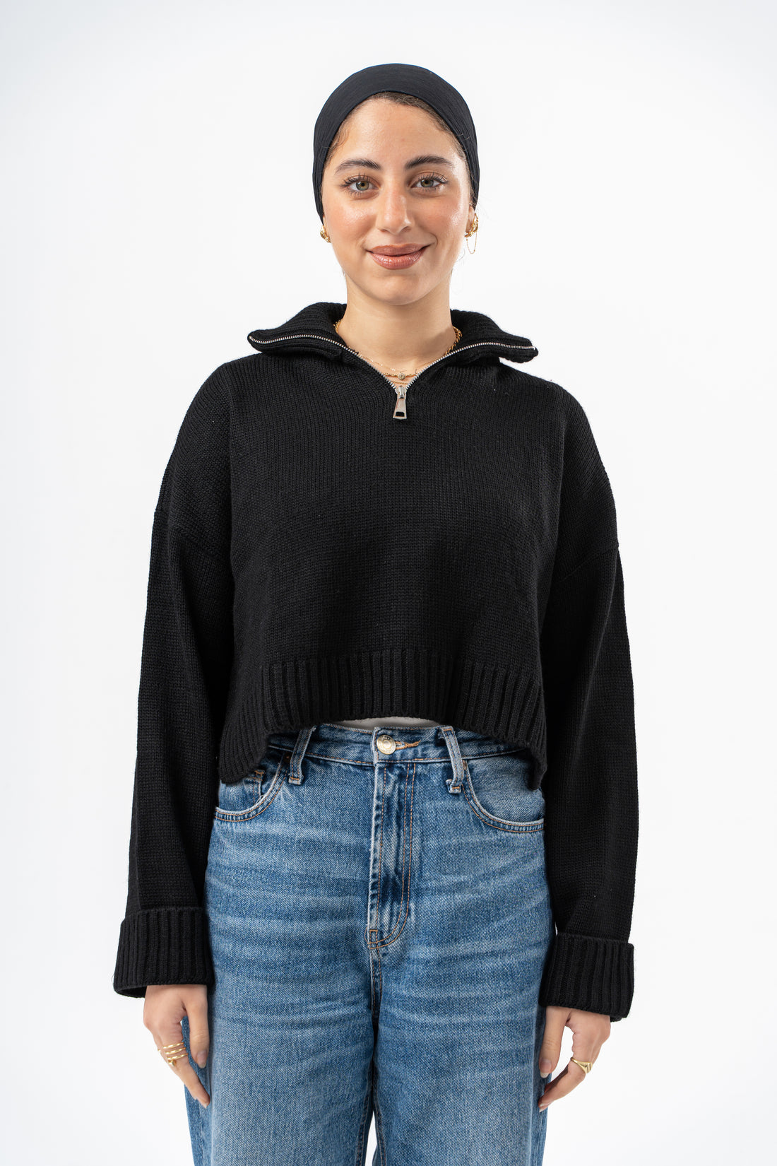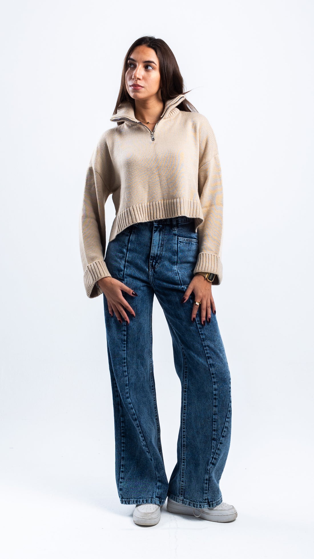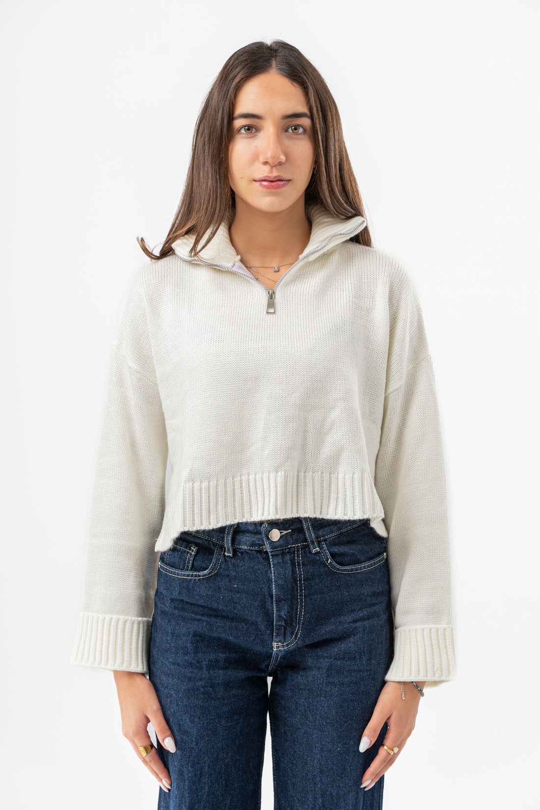 BEIGE CROPPED KNITTED QUARTER ZIP