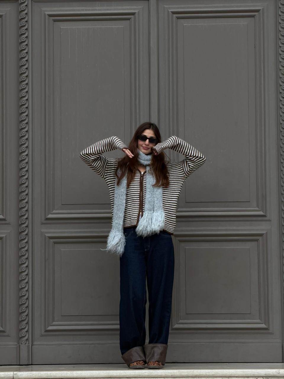 Description: - High turtleneck collar - Contrast stitching detail - Long wide sleeves Size &...