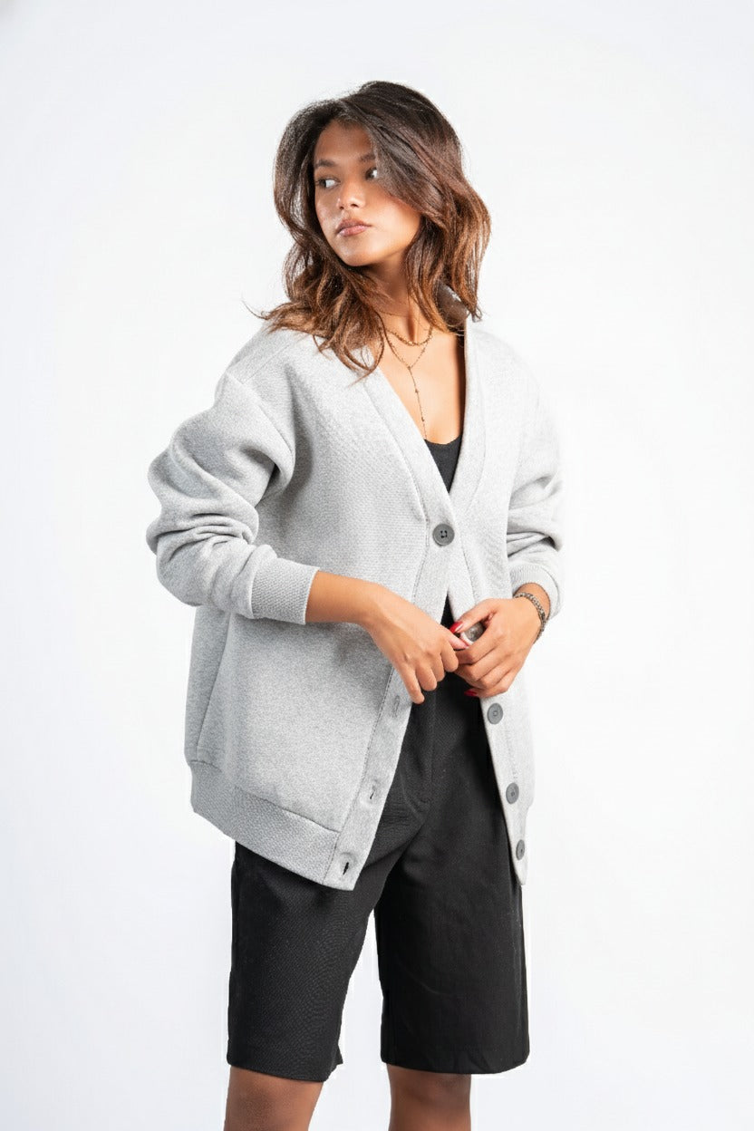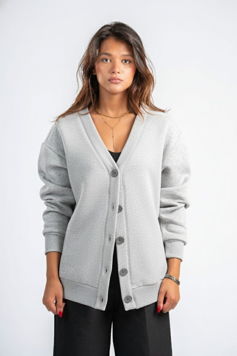 ASH GREY BUTTON UP CARDIGAN