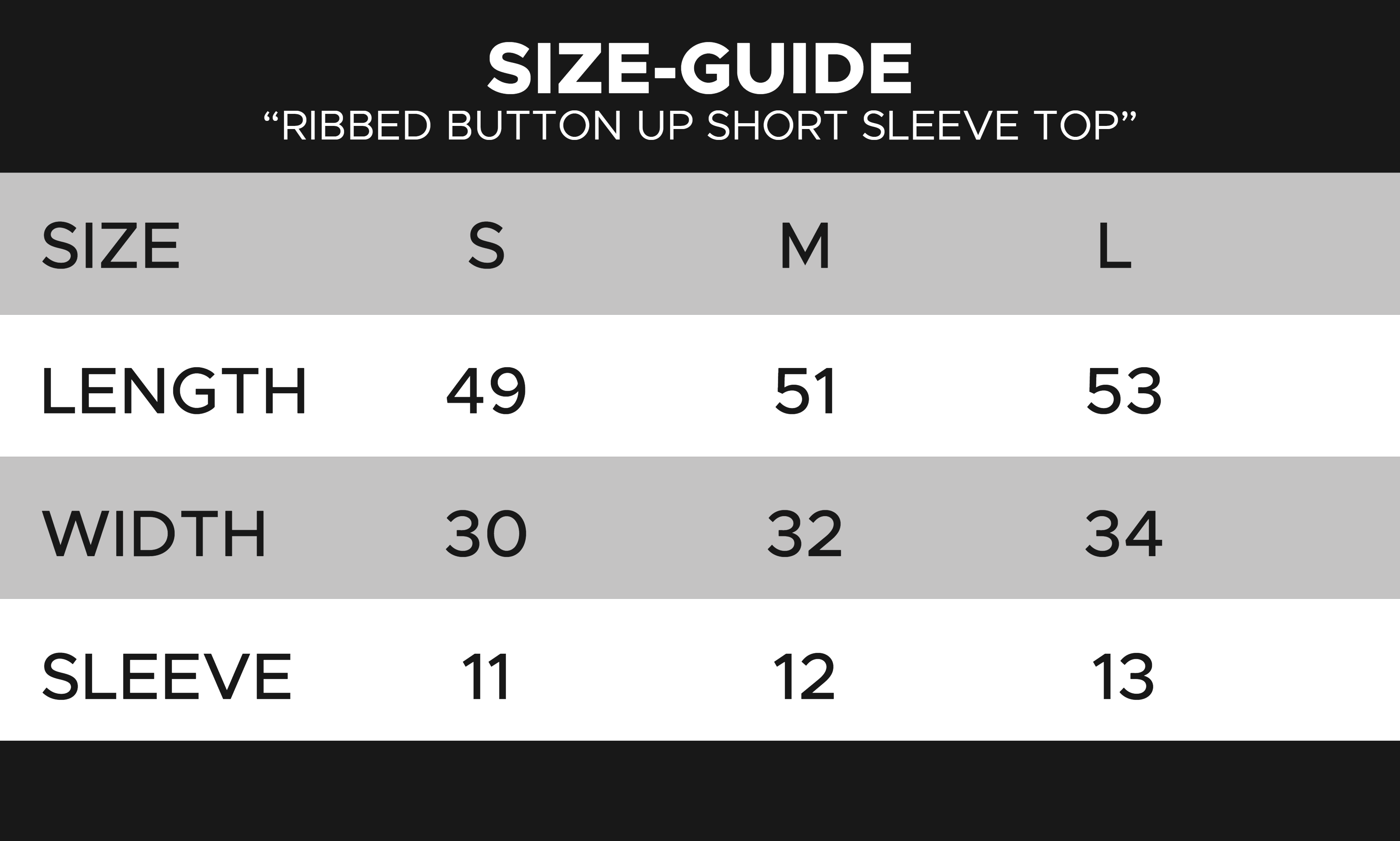 BLACK RIBBED BUTTON-UP SHORT SLEEVE TOP