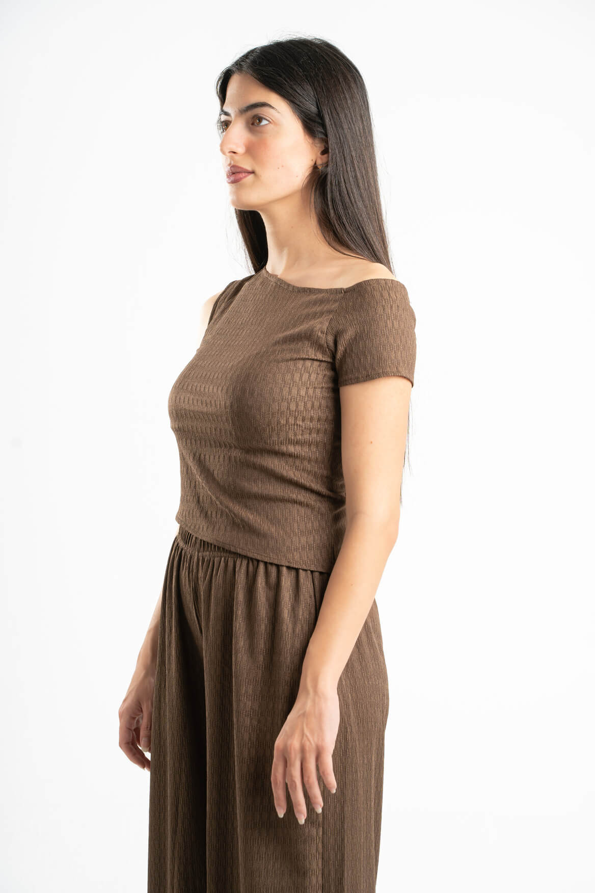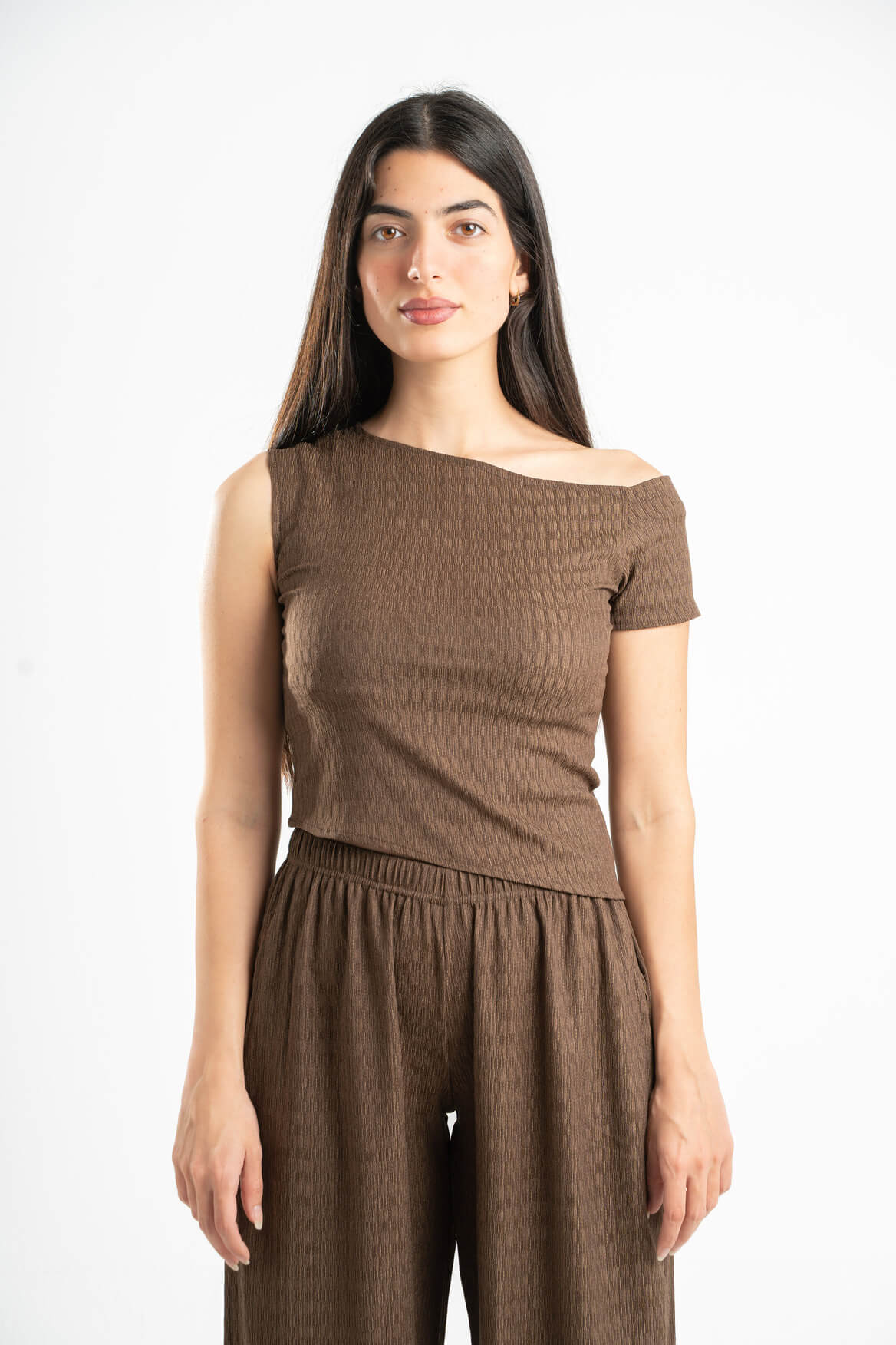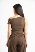 BROWN WRINKLED ASYMMETRICAL TOP