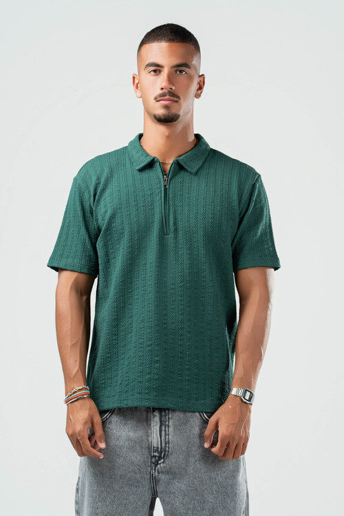 DARK GREEN BRAIDED TEXTURED ZIP UP