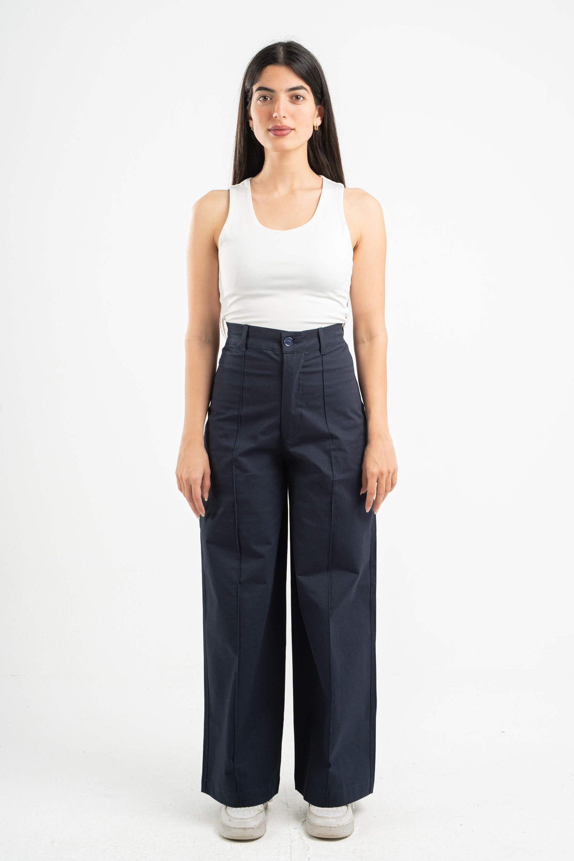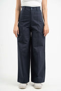 NAVY BLUE CLEAN CUT WIDE-LEG PANTS
