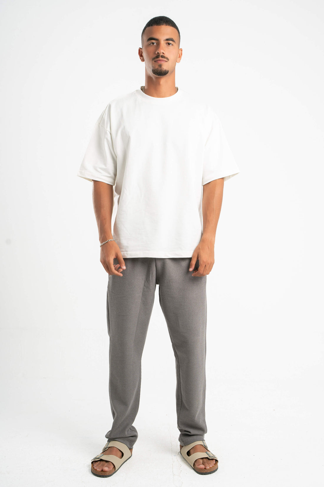 GREY WAFFLE WEAVE PANTS