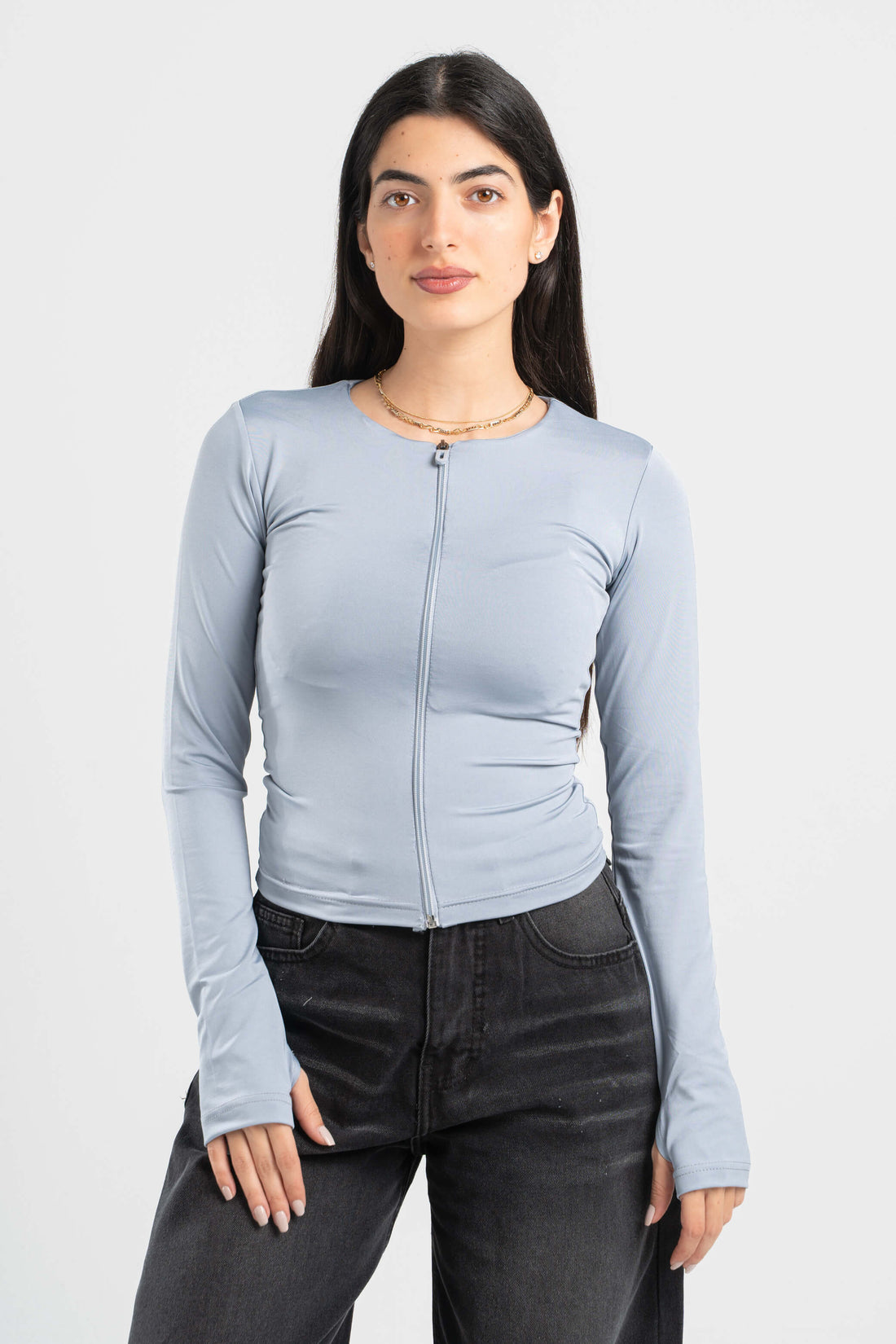LIGHT GREY FULL-ZIPPER TOP