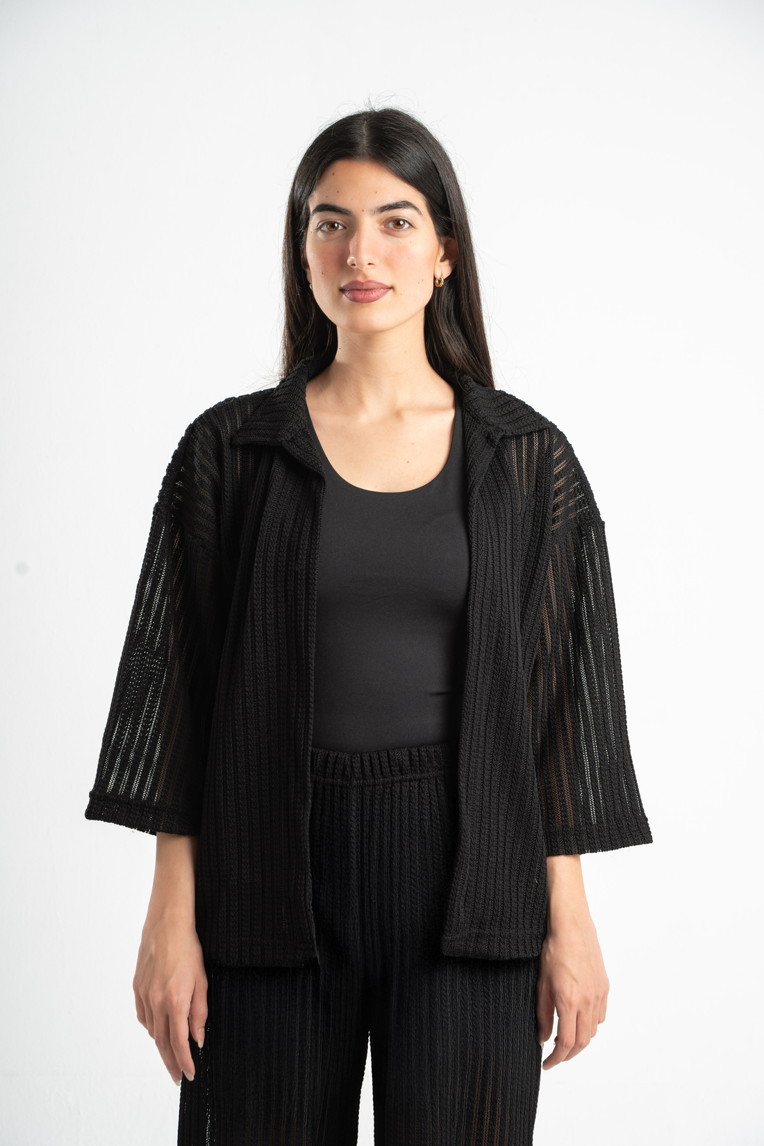 BLACK SEMI SHEER KNITTED TOP
