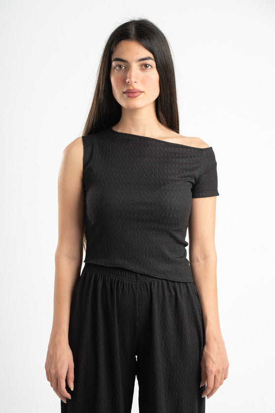 BLACK WRINKLED ASYMMETRICAL TOP