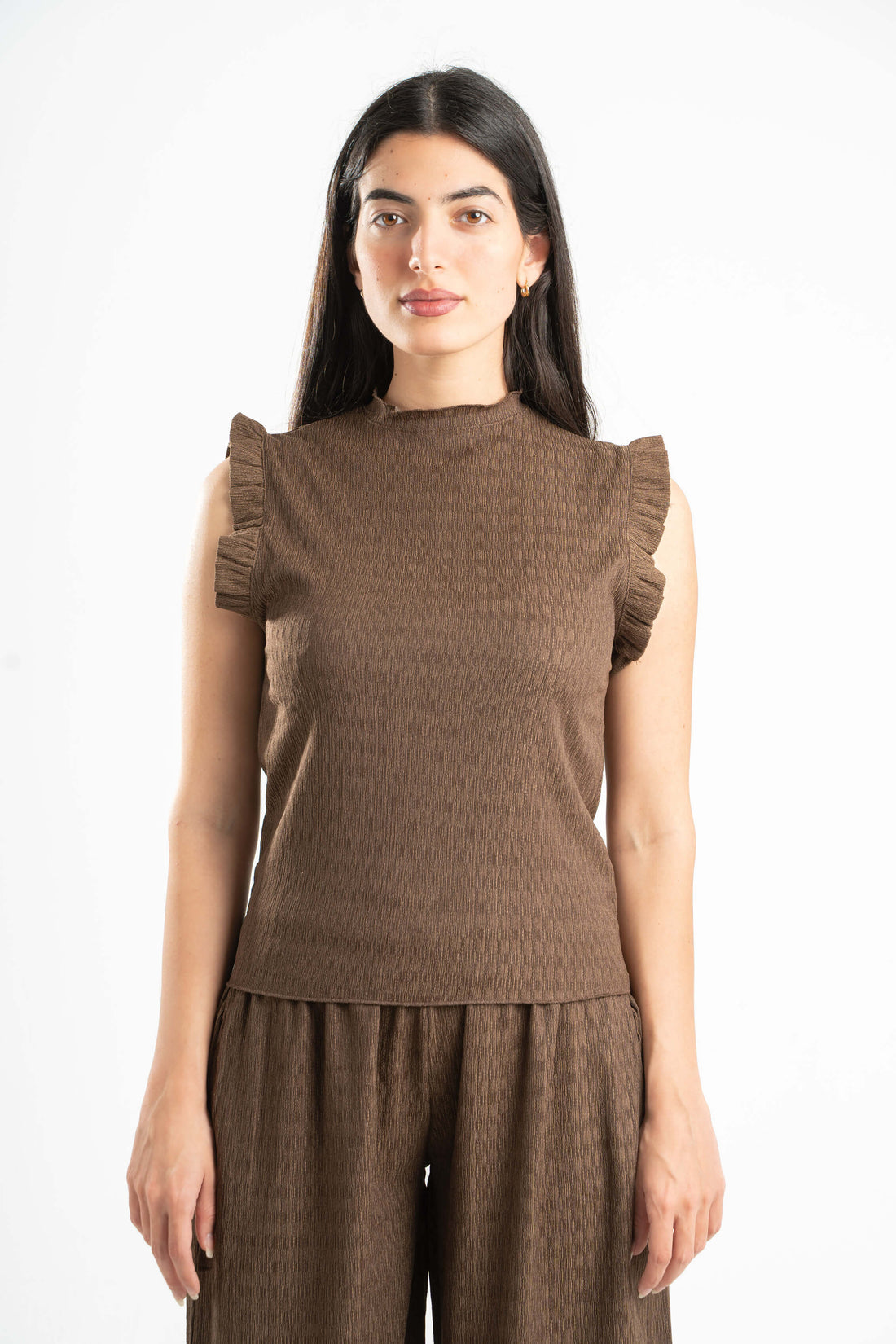 BROWN WRINKLED RUFFLED TOP