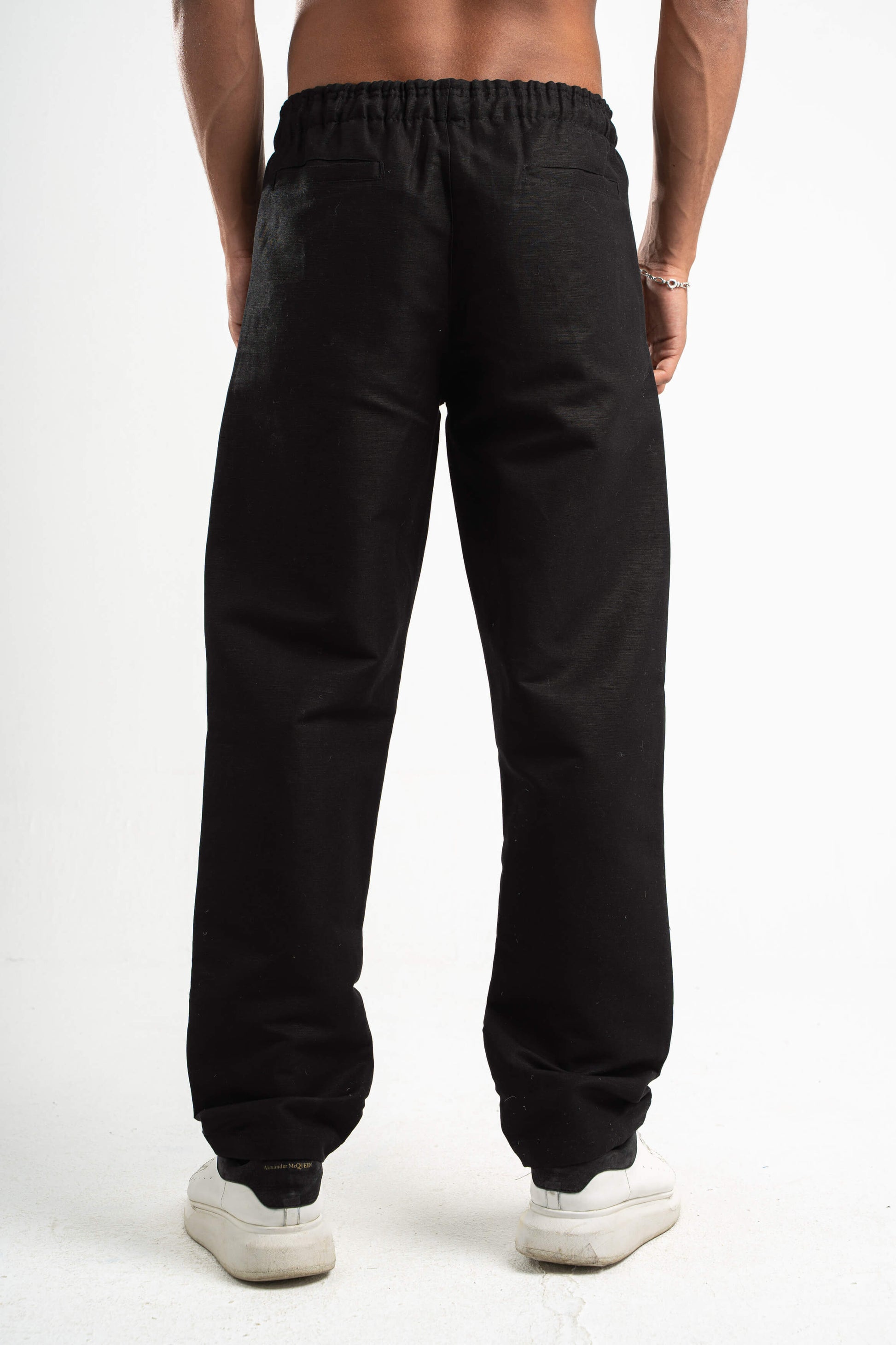 BLACK REGULAR FIT LINEN PANTS