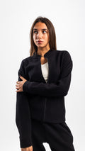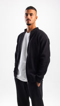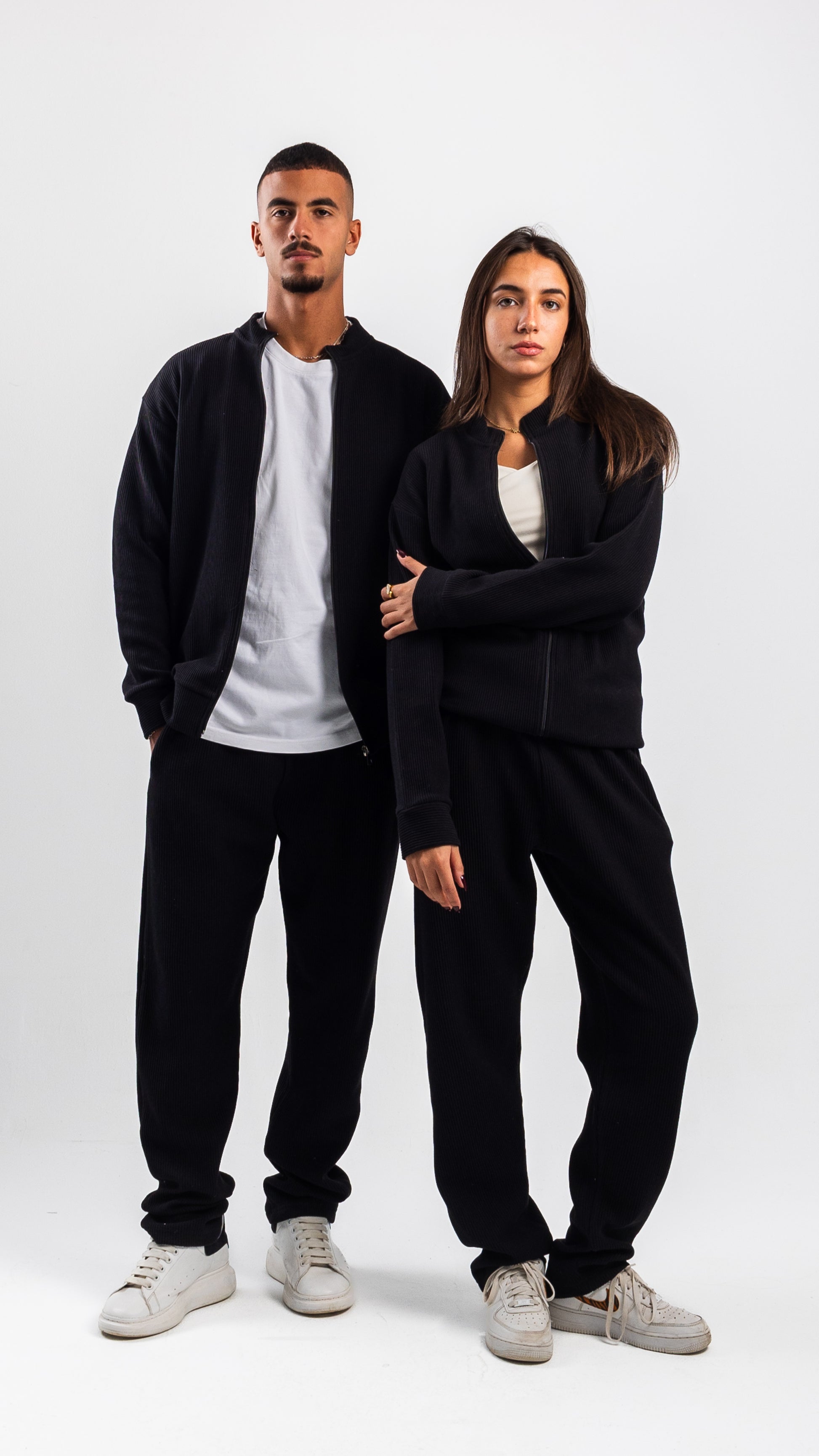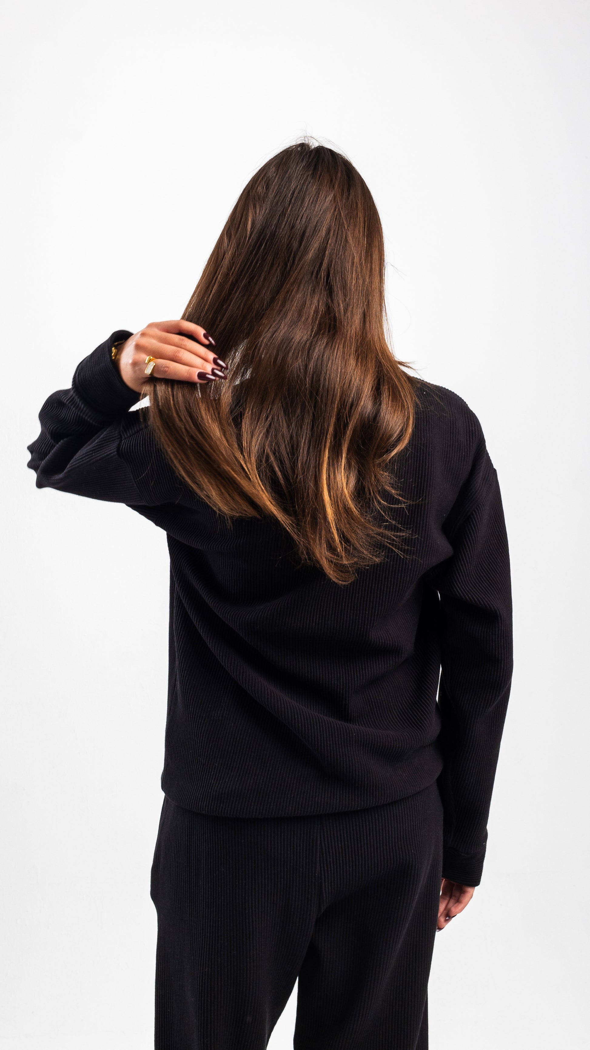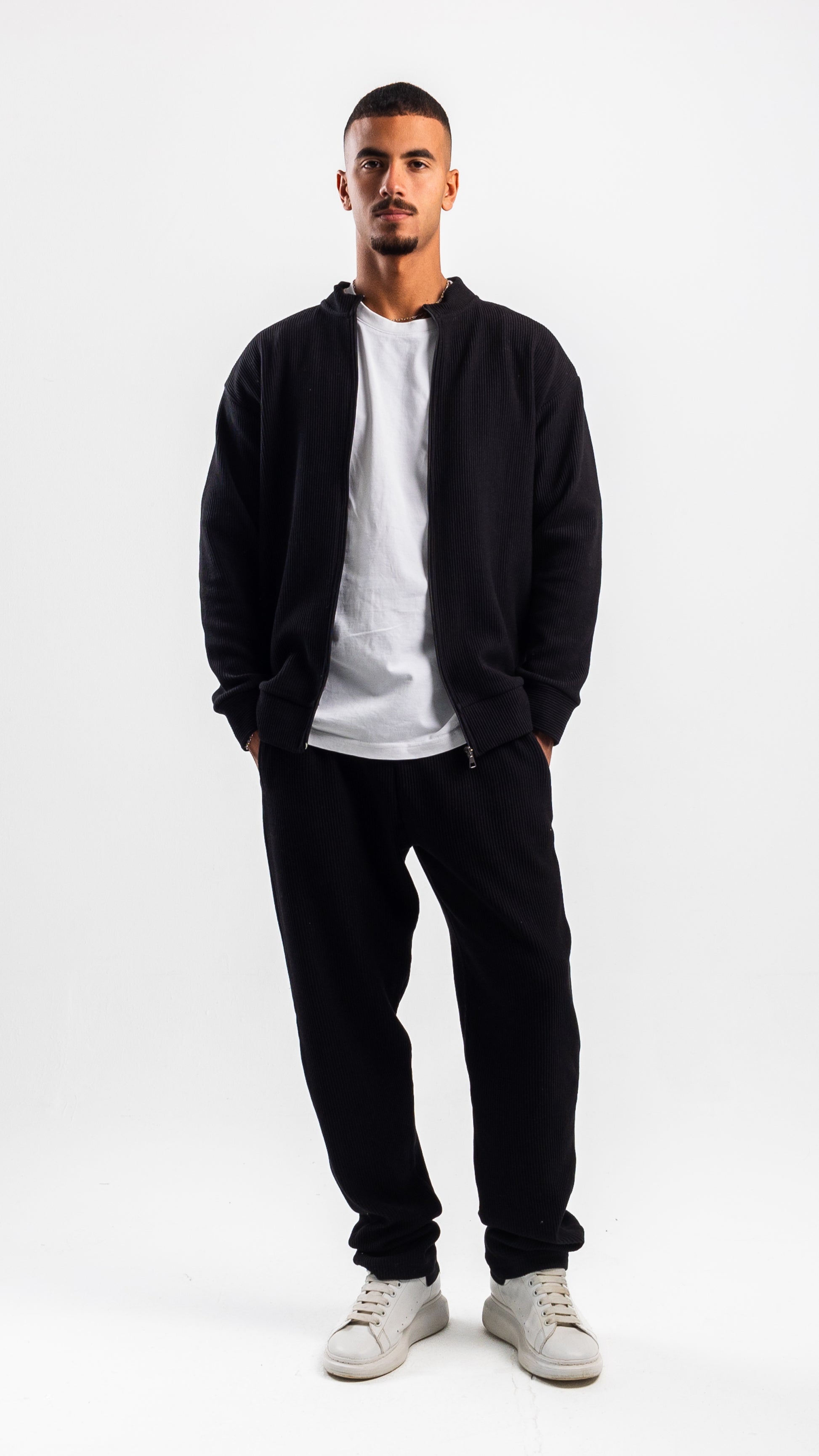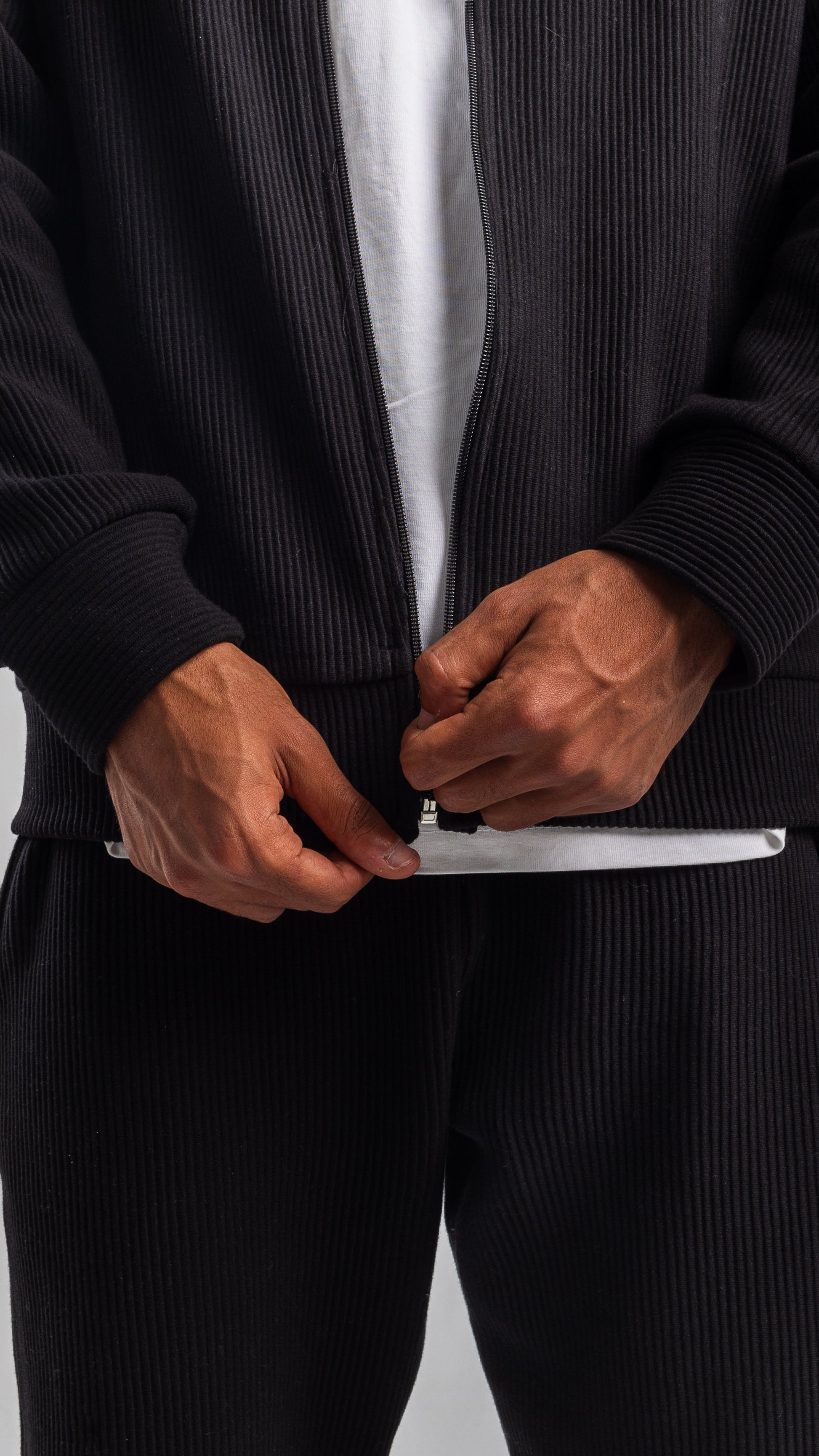 BLACK ZIP-UP RIBBED SWEATSHIRT