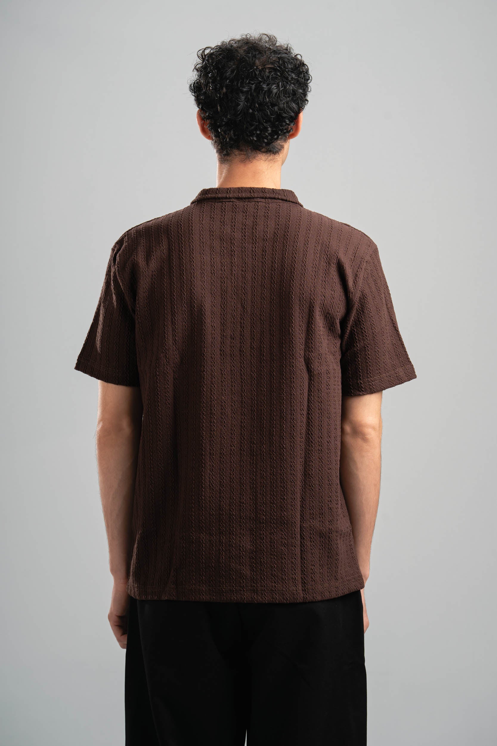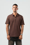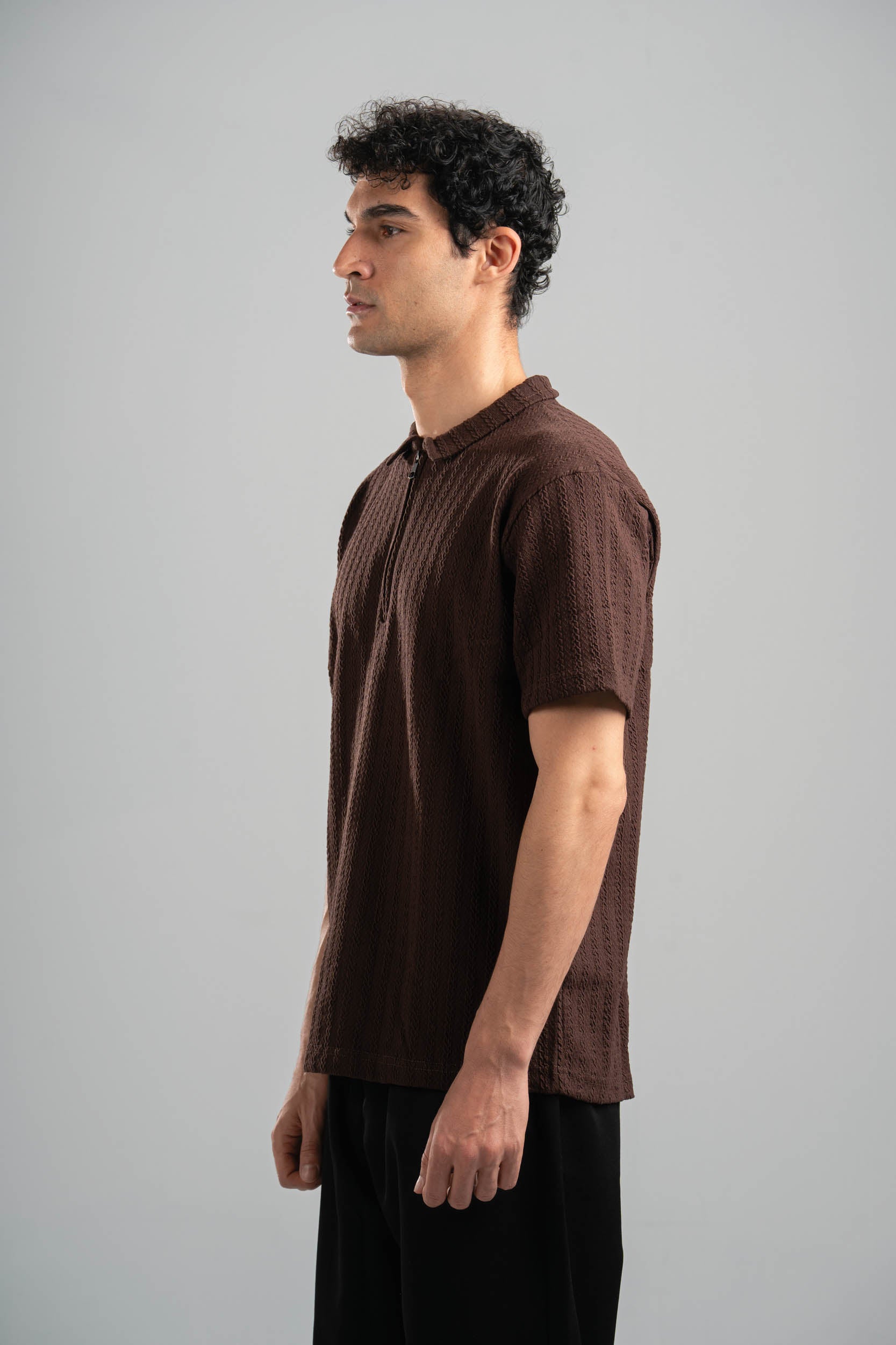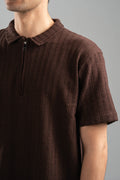 DARK BROWN BRAIDED TEXTURED ZIP UP