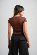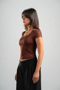 DARK BROWN ESSENTIAL WIDE NECK TOP