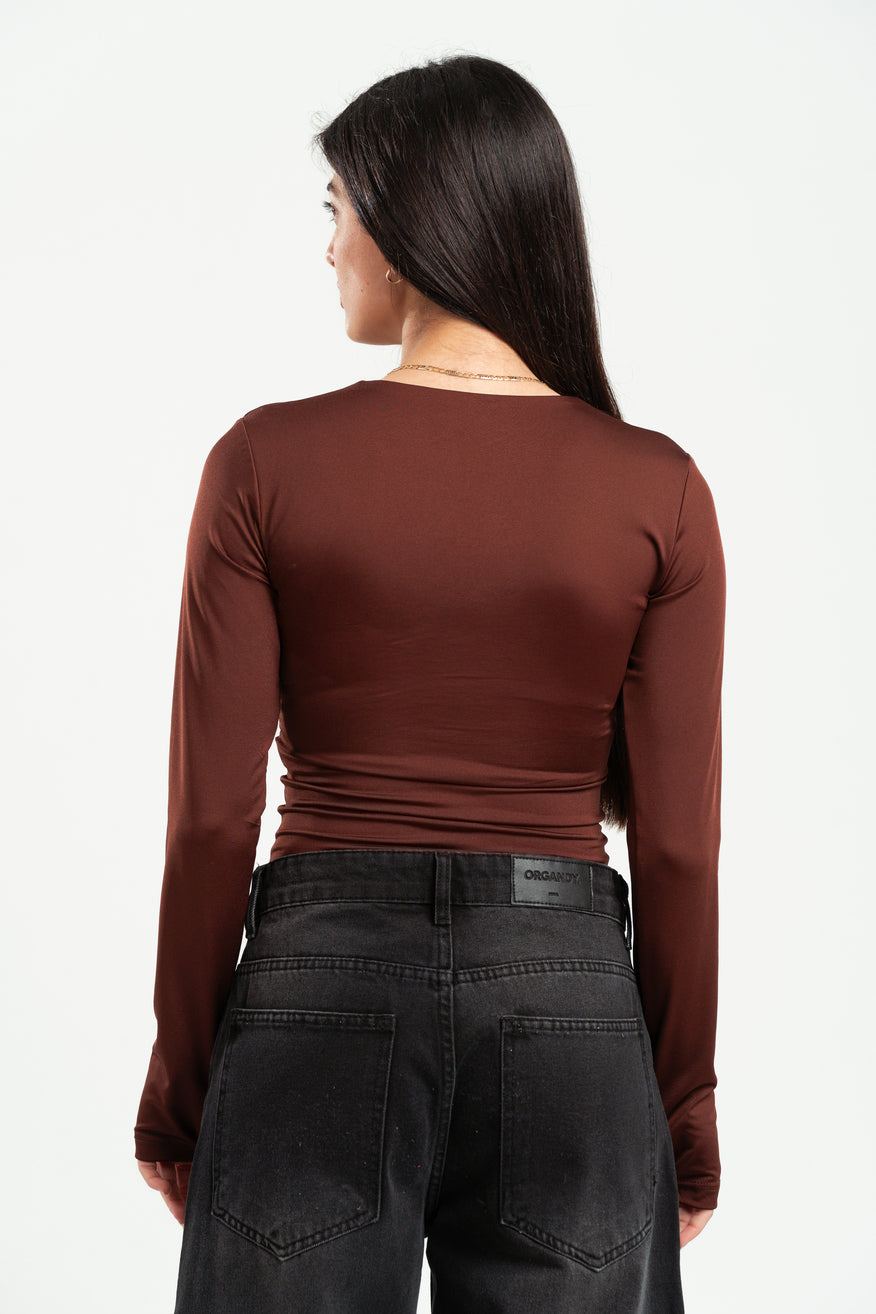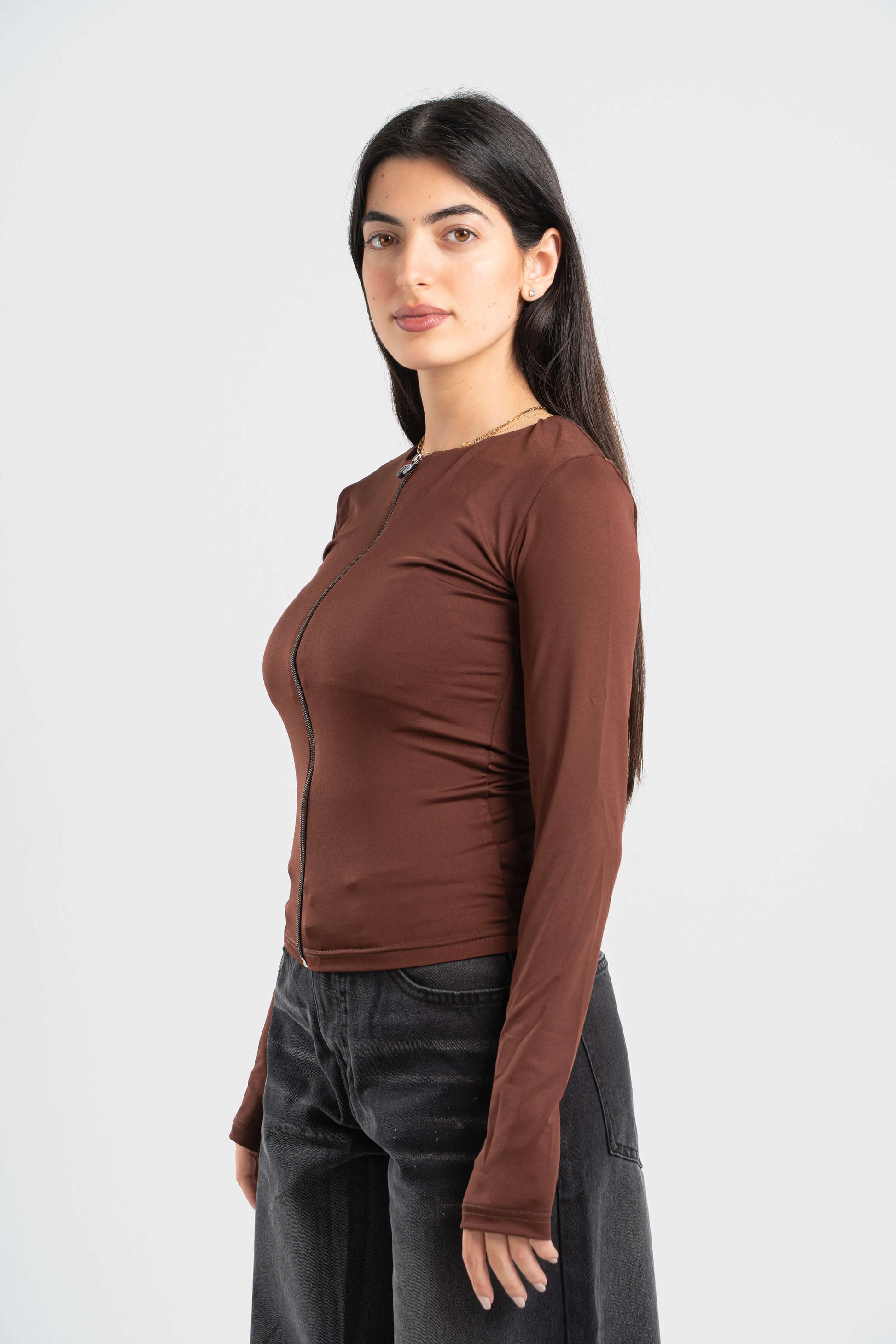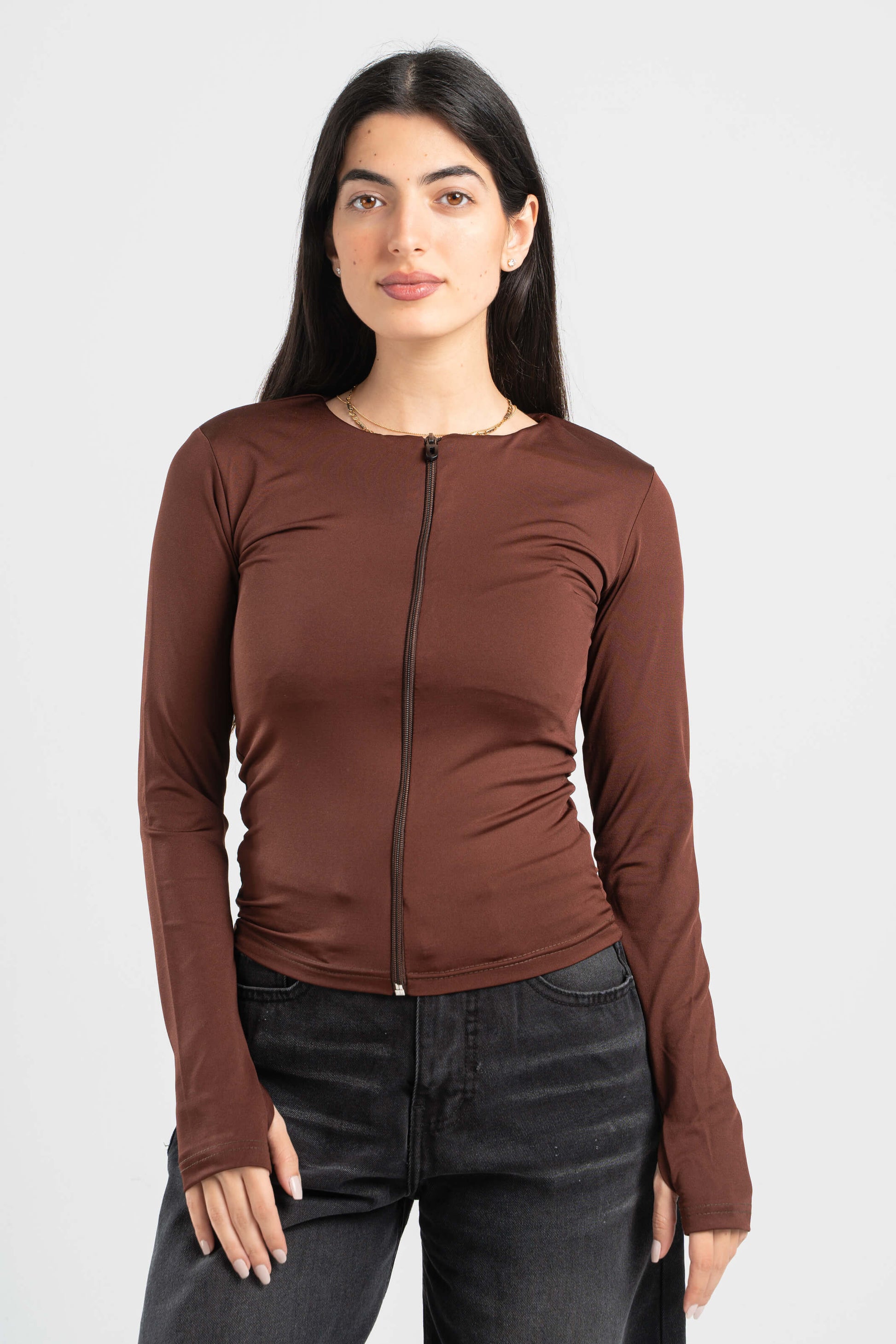 DARK BROWN FULL-ZIPPER TOP