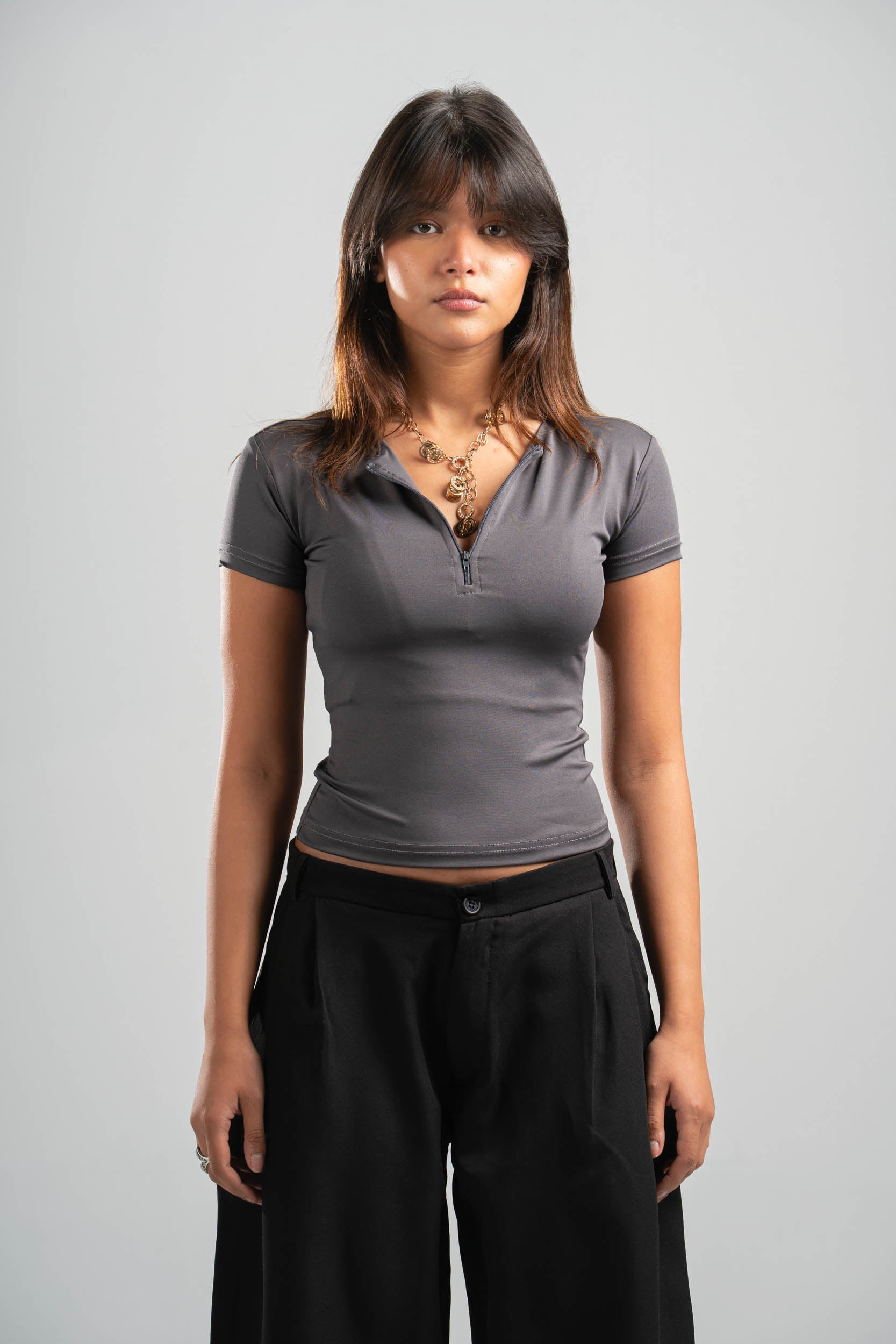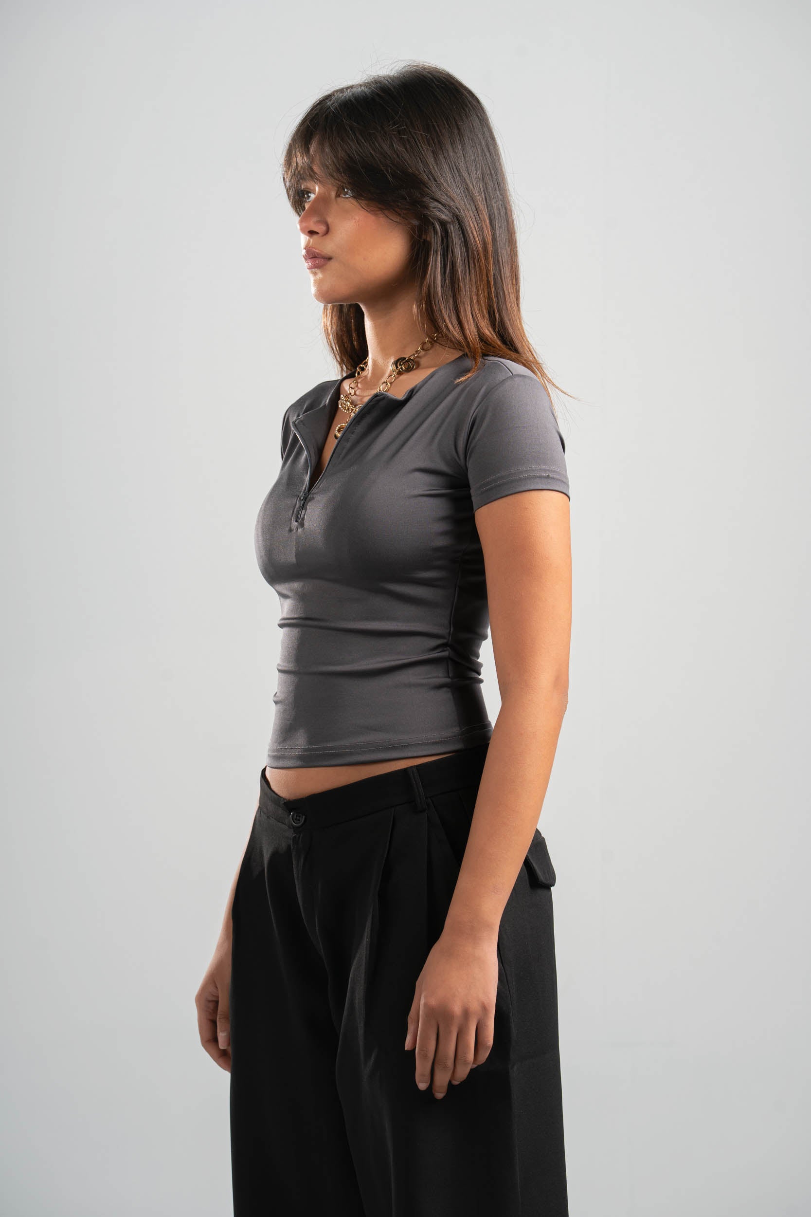 DARK GREY HALF ZIPPER TOP