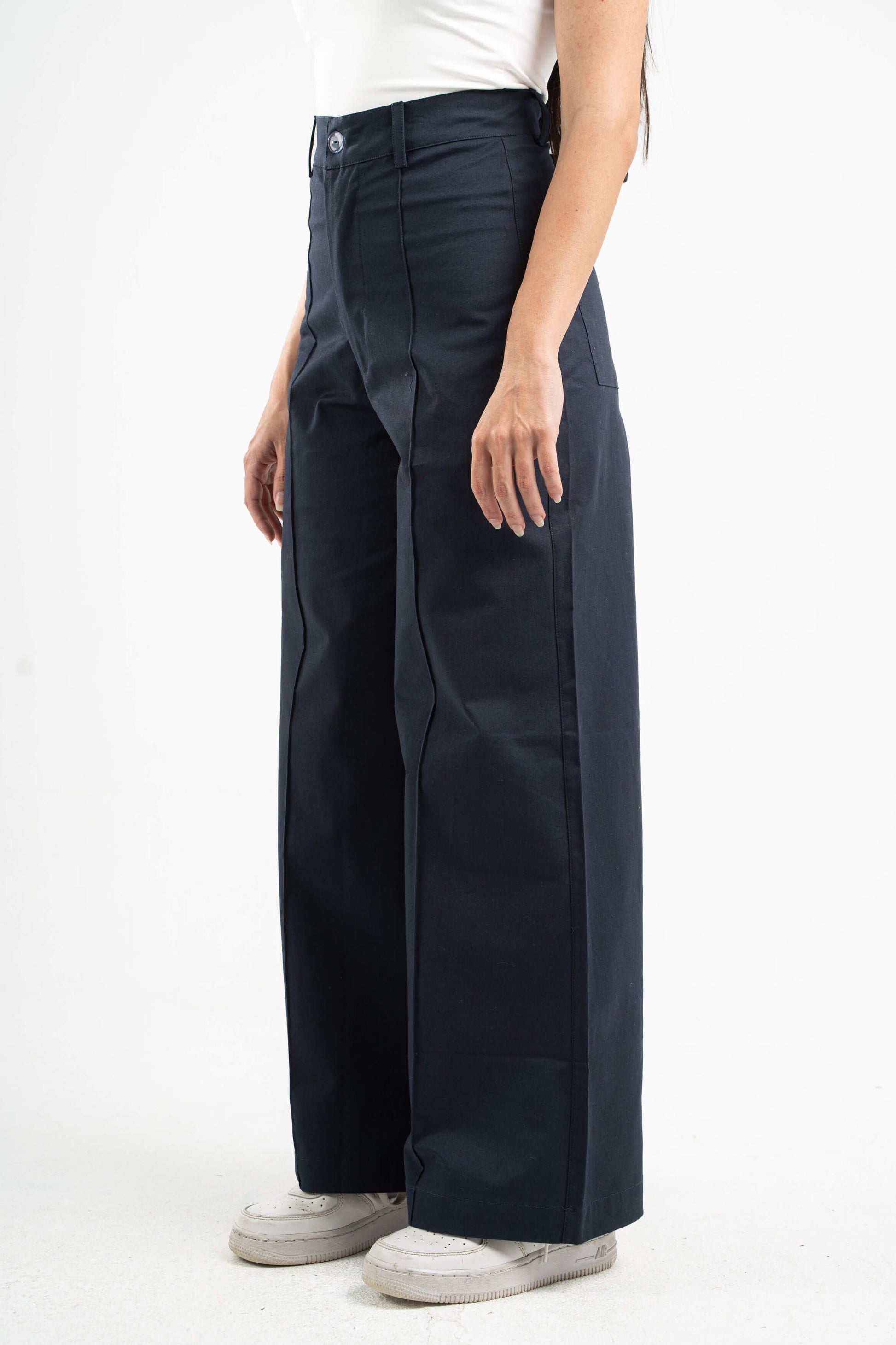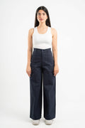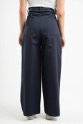 NAVY BLUE CLEAN CUT WIDE-LEG PANTS